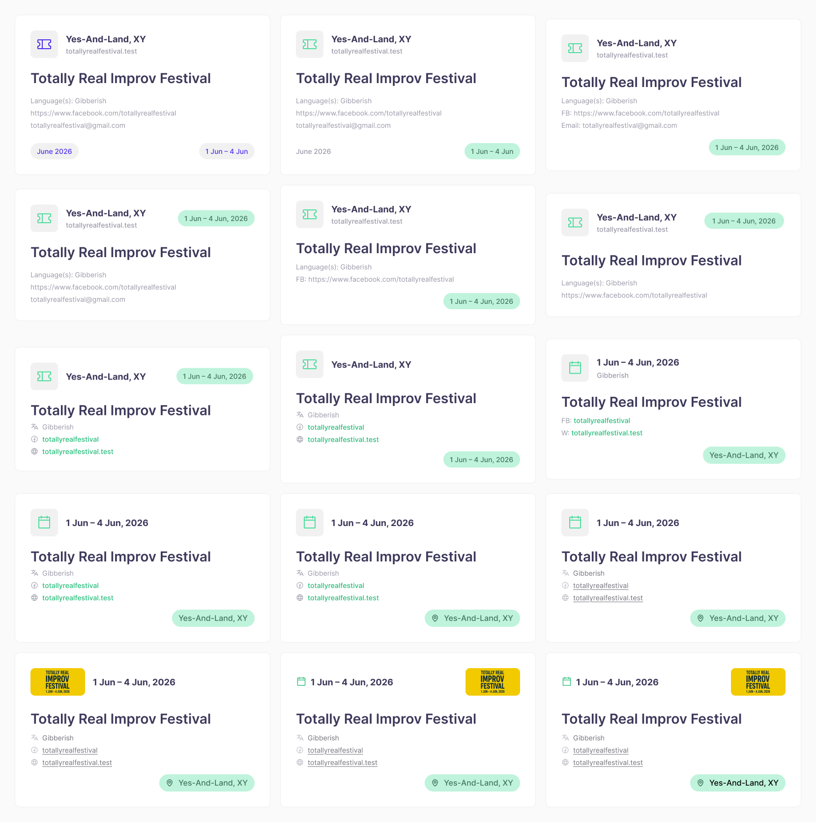 My hope is that another (or many!) developer(s) from the improv community will pick it up, host it under a proper domain (improv-festivals.com is available at the time of writing), and keep it alive.